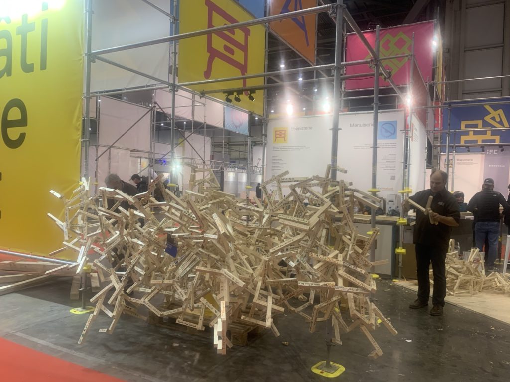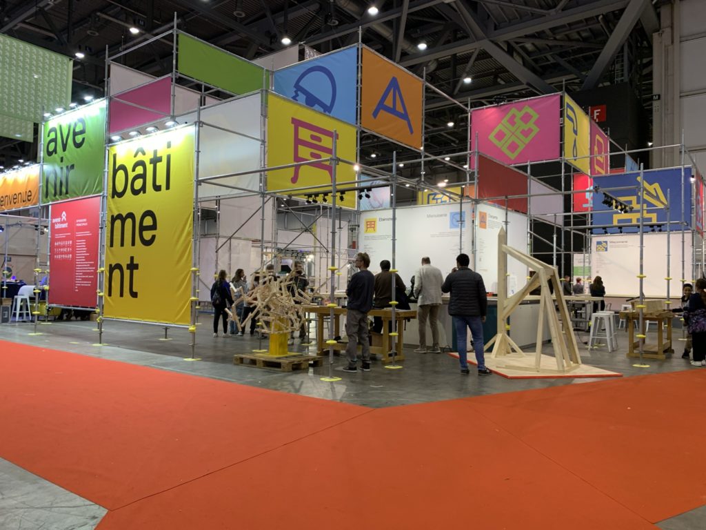 Conçu à partir de structures tubulaires, il reprend les codes de la construction pour offrir une immersion totale dans l’univers du bâtiment. Sa signalétique et son concept graphique mettent en valeur la diversité des métiers.