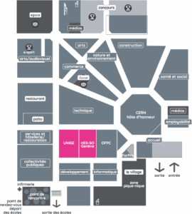HEPIA : dessiner sur une maquette de la Vieille-Ville de Genève en 3D HEG : relever des défis de codage informatique HEAD : se plonger dans des jeux vidéo réalisés par des étudiant-e-s en Media Design HEM : réaliser une animation visuelle et sonore HEdS : mesurer l’effet de médicaments sur des patients-mannequins HETS : se glisser dans la peau d’un-e travailleur-euse social-e