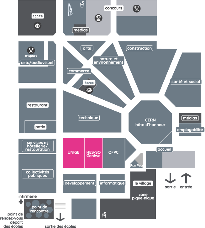 Le stand de la HES-SO Genève à la Cité des Métiers Sur le stand de la HES-SO Genève, des étudiantes et étudiants des six écoles HES proposent des jeux et activités ludiques pour permettre aux jeunes de découvrir quelques métiers HES, avec à la clé de nombreux lots à gagner :