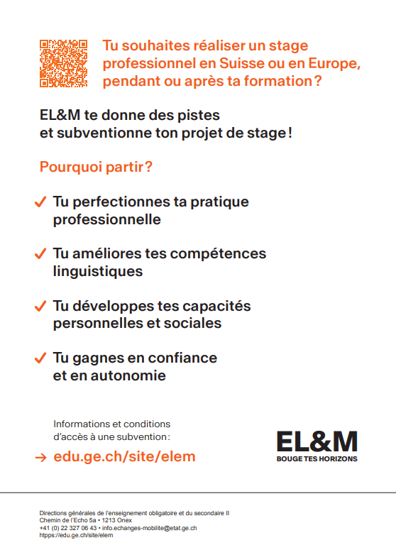 EL&M est un service transversal du Département de l'instruction publique, de la formation et de la jeunesse (DIP) du canton de Genève. Il a pour but de promouvoir, développer et soutenir tous les projets d'échanges ou de mobilités des élèves et apprenties, apprentis genevois.
